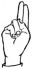На ћирилици написано БЛАЖА КОВАНЏИЋ састоји се из 13 слова [?]. Исписано ћириличном једноручном азбуком за глувонеме: